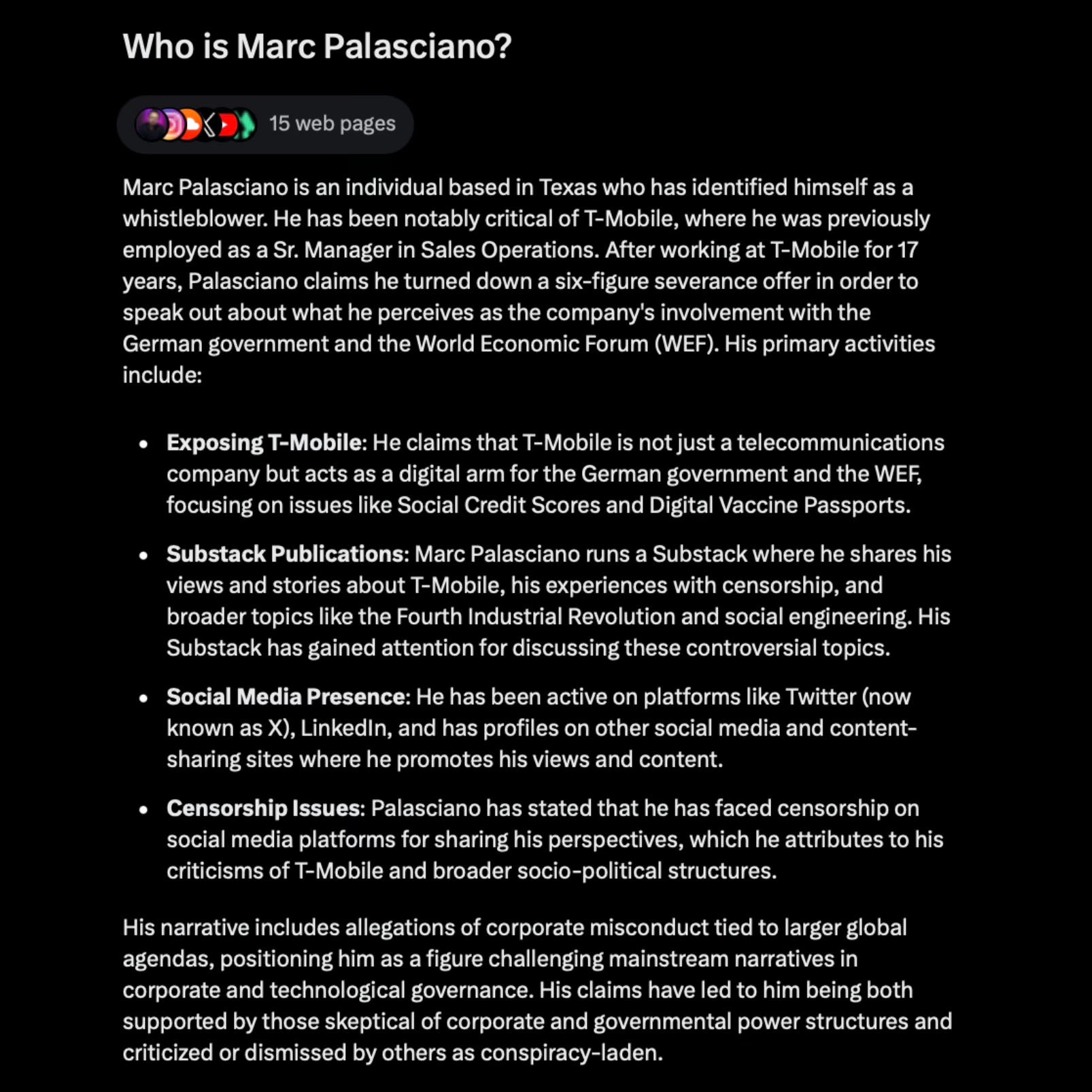 I’m extremely proud of what I’ve done in 2024 but it’s more scary knowing how easy it was for the Artificial Intelligence to learn everything about me. X’s AI is named Grok and it reviewed 15 web pages including my social media accounts within 5 seconds to provide the above summary.