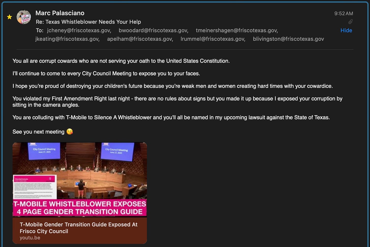 Happy Pride Month! Frisco Is Colluding With T-Mobile To Silence A Whistleblower.