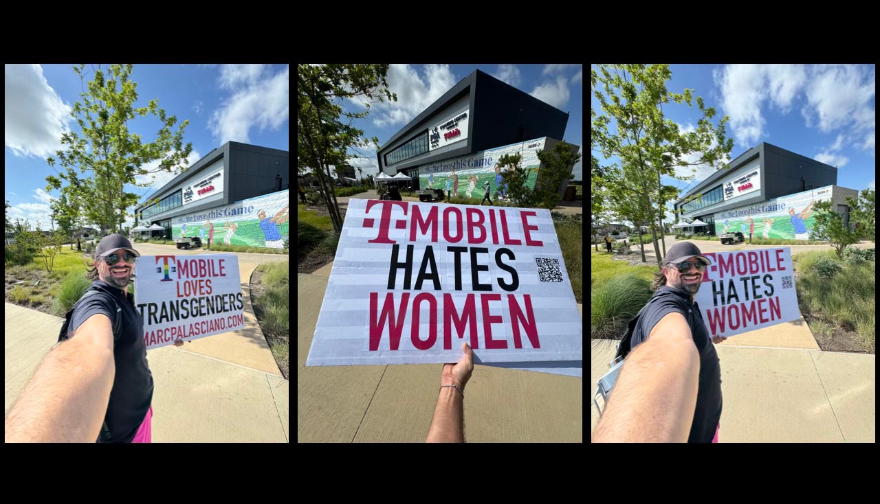 The T-Mobile Frisco Texas office was on my way to the PGA Headquarters so I had to stop and grab a picture with my new signs. I worked out of the Frisco office for over 10 years, and I was barred from entering this office from September 2021 to July 2022 and discriminated against because I was unvaccinated.