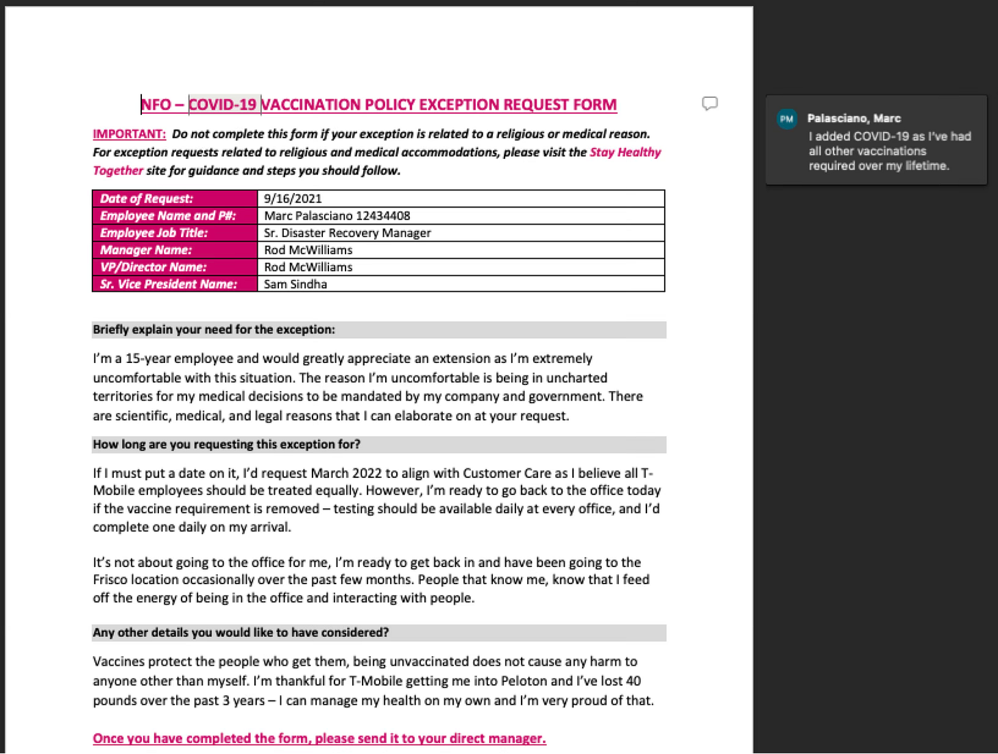 And I’m gonna add my Vaccine Exemption Form from September 2021 so you can see what I was saying back then - I was leading T-Mobile’s Covid-19 Response for 15,000 stores and 70,000 employees, it’s safe to say I know more about America’s response to Covid better than 99% of people.