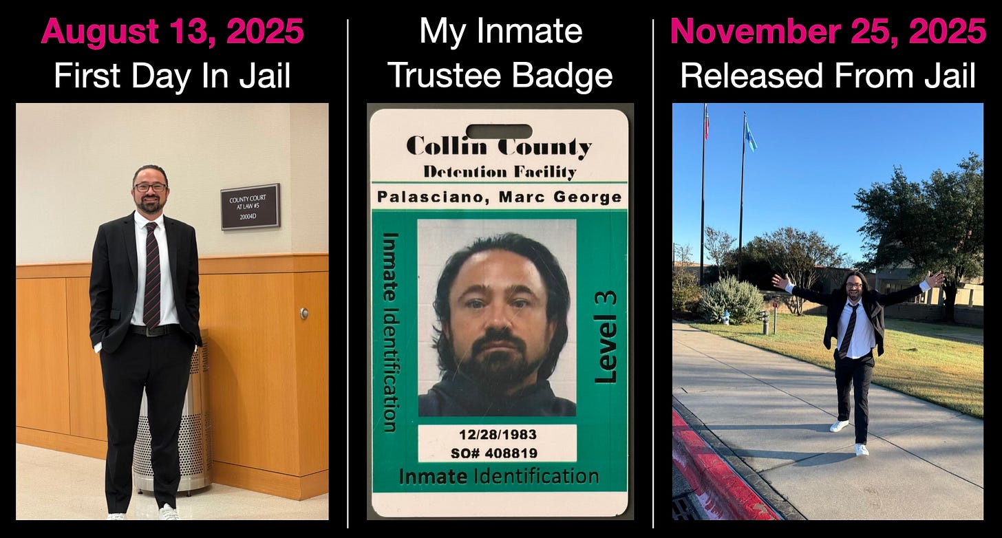 I spent 104 days in the Collin County Jail after losing my trial in my harassment charge from a T-Mobile President who is now T-Mobile’s Chief Operating Officer. The State of Texas and T-Mobile lied in order to prosecute me - they even resorted to changing out my Conservative Constitutional Judge from Collin County with a Retired Liberal Judge from Dallas County, I learned first hand how the Judiciary System is rigged against a Whistleblower speaking up.