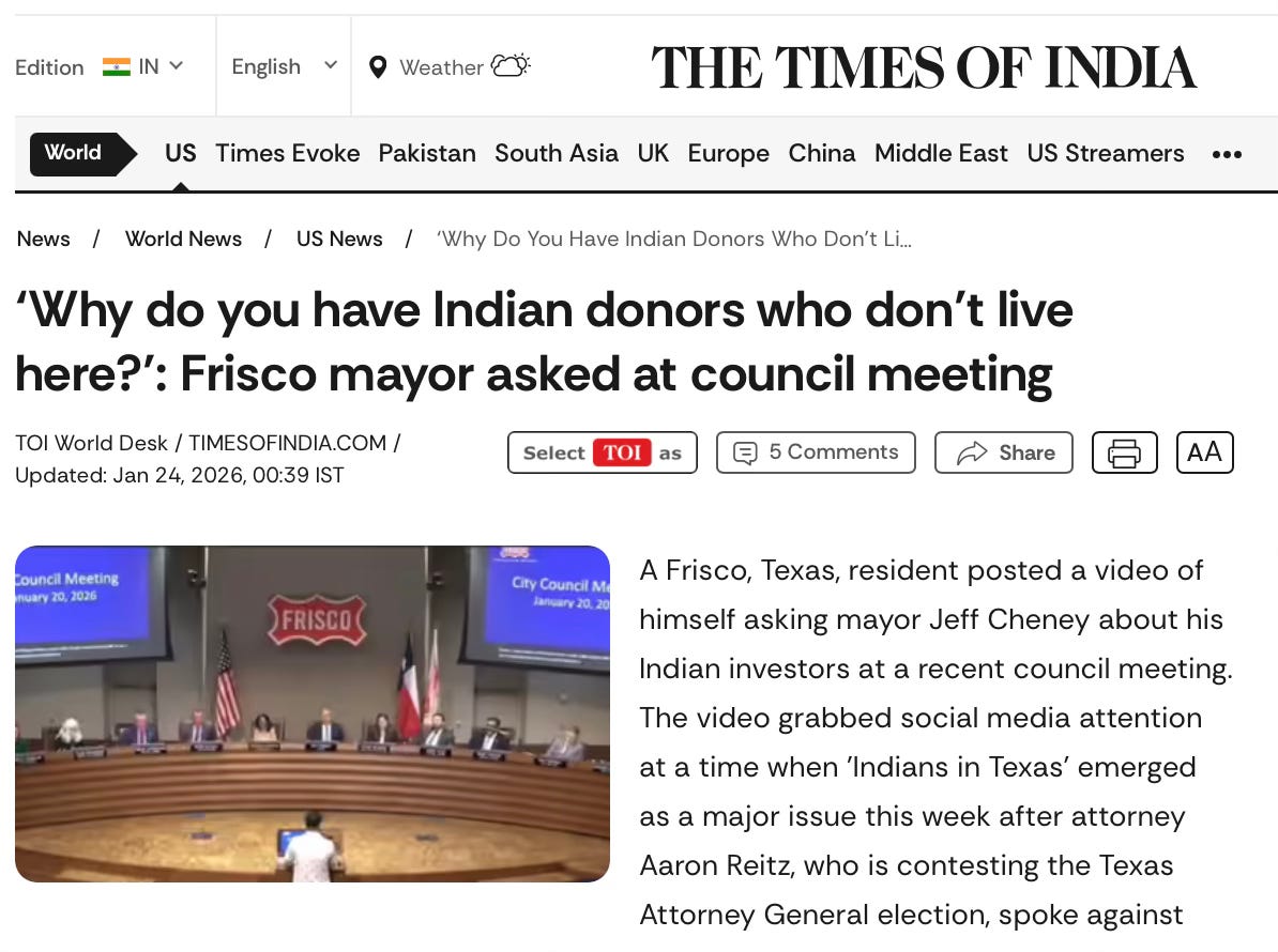 The Blaze ran by Glenn Beck and Infowars ran by Alex Jones are two of the biggest Independent platforms based in Texas - they’re exposing H-1B fraud while completely ignoring my story exposing the Frisco Mayor’s Indian Donations.